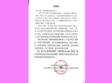 中铁四局集团第一工程有限公司向我公司发来表扬信